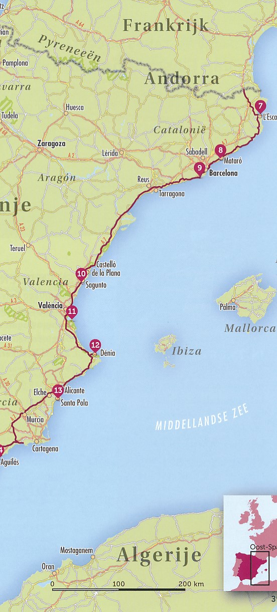 Tussen begin en half maart reden we de route langs de kust van de baai van Roses, via Barcelona en Valencia naar Águilas, maar dan in omgekeerde richting.