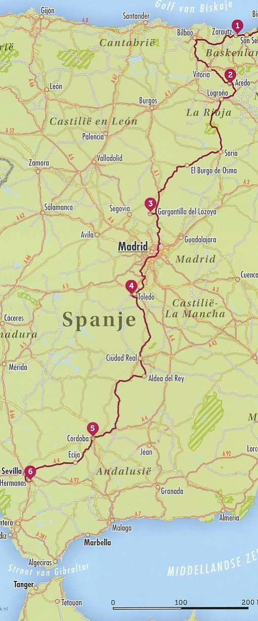 Deze routegids beschrijft twee routes van noord-Spanje naar zuid-Spanje.