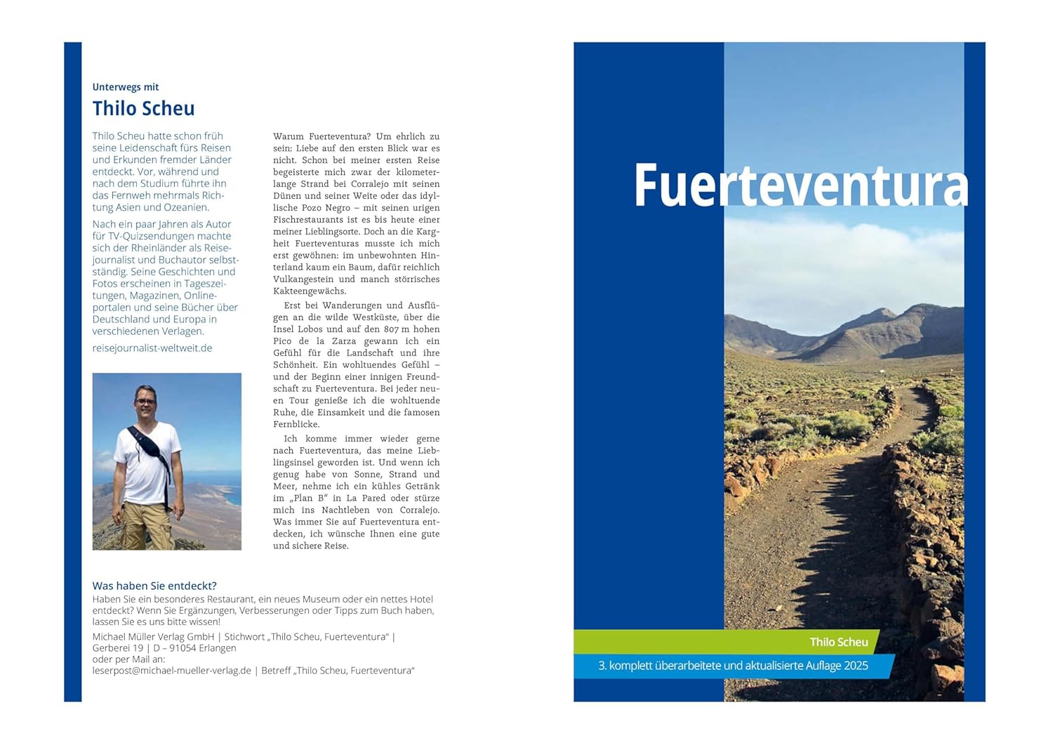 Entdecken Sie mit dem Fuerteventura-Reiseführer in der zweiten Auflage die zweitgrößte der kanarischen Inseln. Autor Thilo Scheu zeigt auf 272 Seiten mit 140 Farbfotos die herbe Schönheit und alle Sehenswürdigkeiten der zu Spanien gehörenden Vulkaninsel. 44 Übersichtskarten und Pläne, eine herausnehmbare Karte im Maßstab 1:175.000 sowie 16 Wanderungen und Ausflüge samt gratis herunterladbarer GPS-Tracks – so wird Ihr Fuerteventura-Urlaub zu einem individuellen und unvergesslichen Erlebnis.