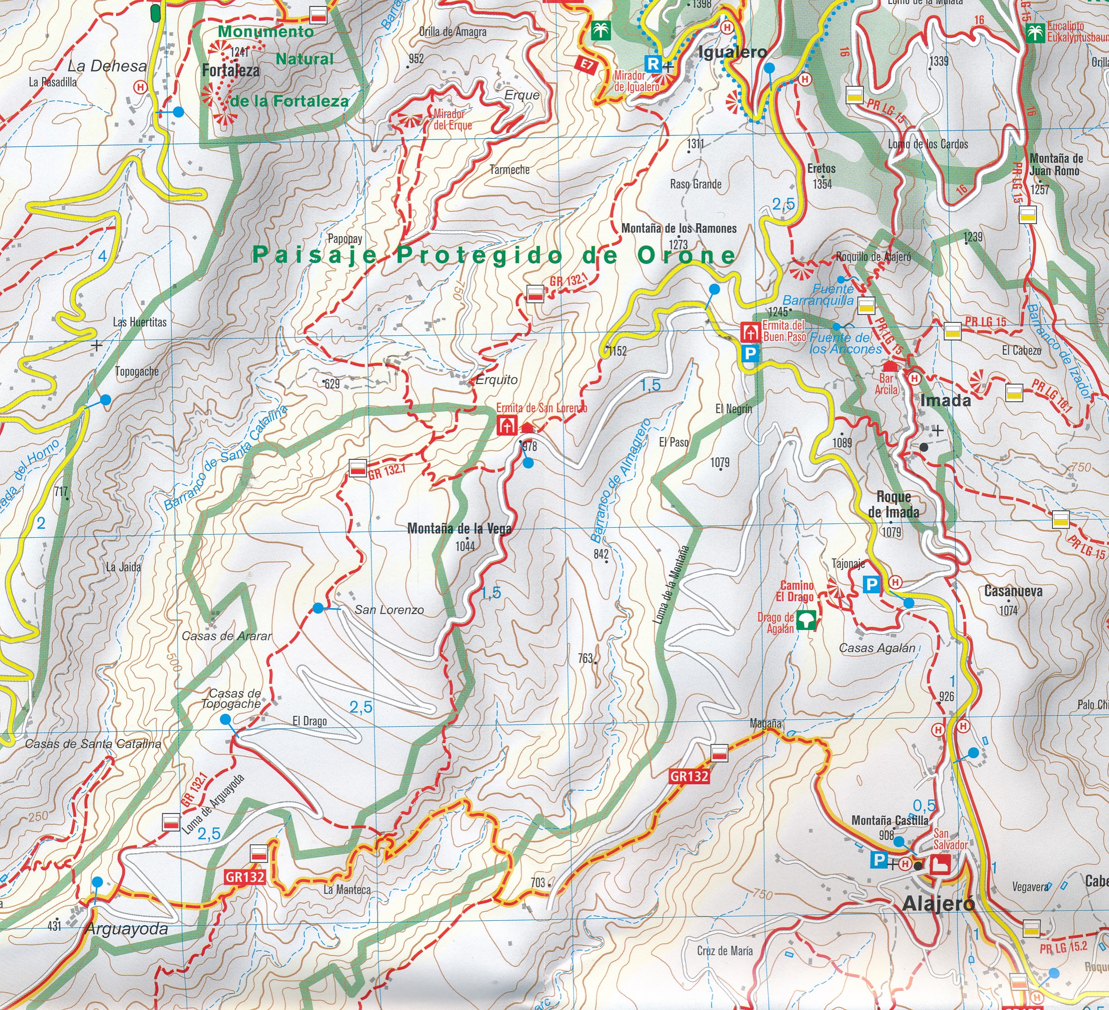 (C)2018 staat erop, maar toch is de kaart verouderd. De GR132 staat erop, maar volgens de oude route. Hier en daar kloppen ook andere paden niet met werkelijkheid en zijn nieuwe paden er niet op aangegeven. Ook worden PR-LG paden aangeduid op de kaart, maar die zijn inmiddels vervangen door een nieuw genummerd wandelnetwerk op La Gomera.