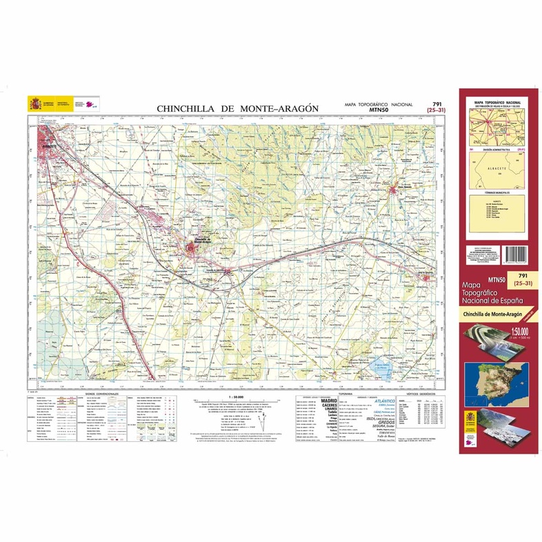 Topografische kaart 791 MT50 Chinchilla de Monte Aragón | CNIG - Instituto Geográfico Nacional1 (9788441620216)