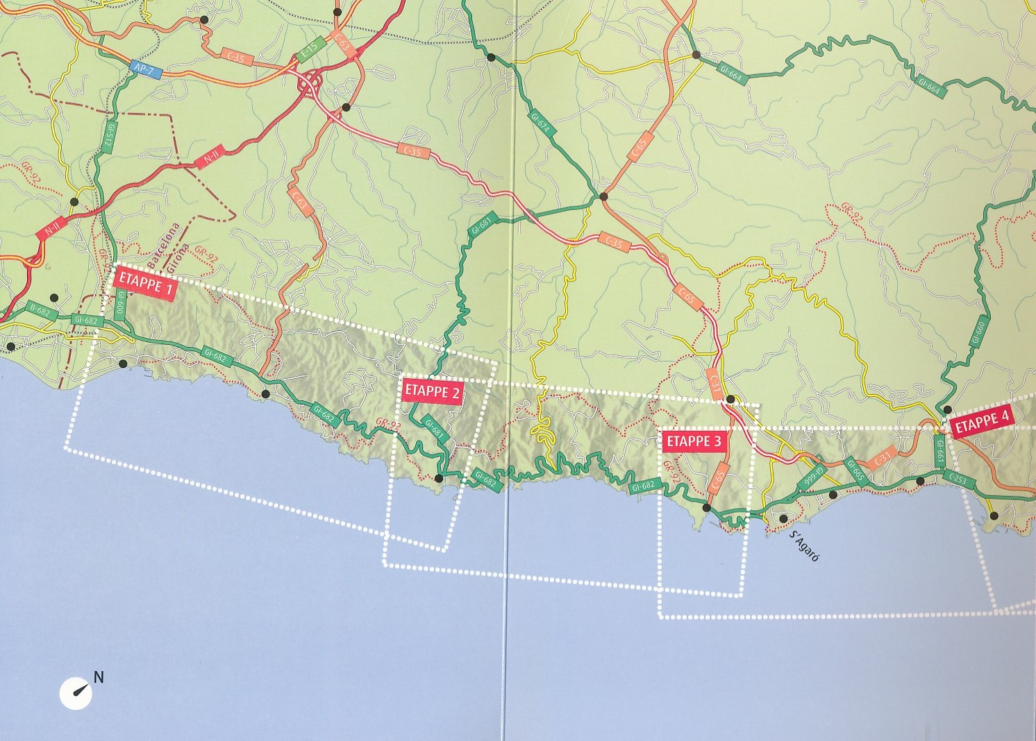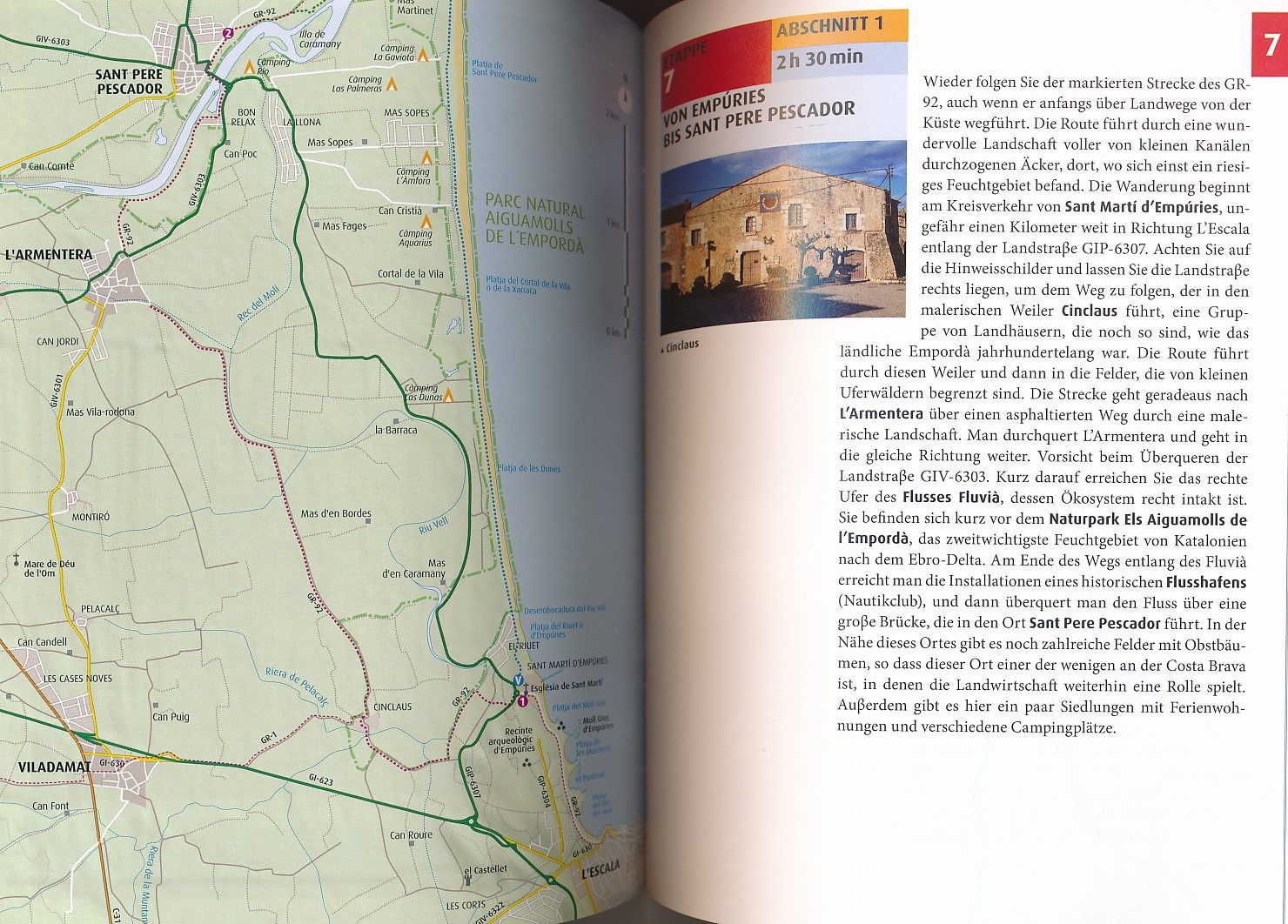 Goede beschrijving van dit mooie wandelpad langs de kust van de Costa Brava. Duitstalig, voorzien van goed kaartmateriaal, een goede route-beschrijving, praktische informatie en mooie foto's. 255 km GR92 (Blanes tot Port Bou en de kustweg.