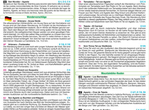 Der nördliche Teil der kanarischen Insel Gran Canaria steht im Mittelpunkt dieser Rad- und Wanderkarte. Auf beiden Seiten sind Wanderwege und Mountainbikestrecken im Kartenteil markiert. Hinzu kommen auf jeder Seite Kurzbeschreibungen und Längenangaben zu den gekennzeichneten Tourenvorschlägen, und das in drei Sprachen: deutsch, spanisch, englisch. Allgemeine Hinweise zur Wegbeschaffenheit und zum Klima ergänzen die Wegskizzen und machen die Karte so zu einer sehr nützlichen Orientierungshilfe für Aktivurlauber.