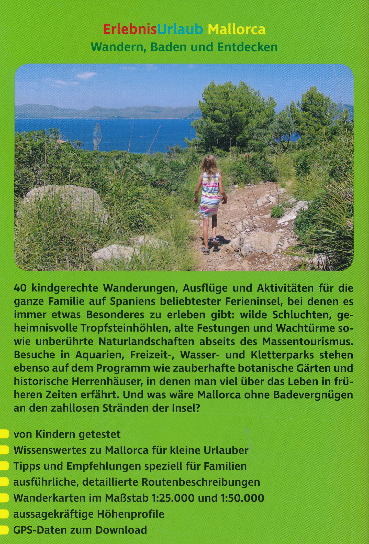 Die detaillierten Wegbeschreibungen mit Fotos, Höhenprofilen und Karten in diesem Buch machen alle Ausflüge einfach nachvollziehbar. GPS-Tracks stehen zum Download von der Internetseite des Rother Bergverlags bereit. Altersempfehlungen, Angaben zur Schwierigkeit und zu Gehzeiten sind ideale Entscheidungshilfen für die Tourenauswahl. Und dann ist da noch das kleine Murmeltier »Rothi«, das die Kinder in den Urlaub auf Mallorca begleitet und ihnen Geheimtipps verrät, spannende Legenden erzählt und Besonderheiten der Ausflugsziele erklärt.