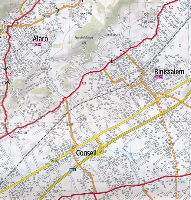 Duidelijke fietskaart van Bikeline met daarop het westen van Mallorca (Tramuntana – Palma – Andratx – Sóller – Alcúdia – Inca). Met alle wegen, fietspaden en fietsroutes daarop aangegeven en een erg uitgebreide legenda. Water- en scheurvast.