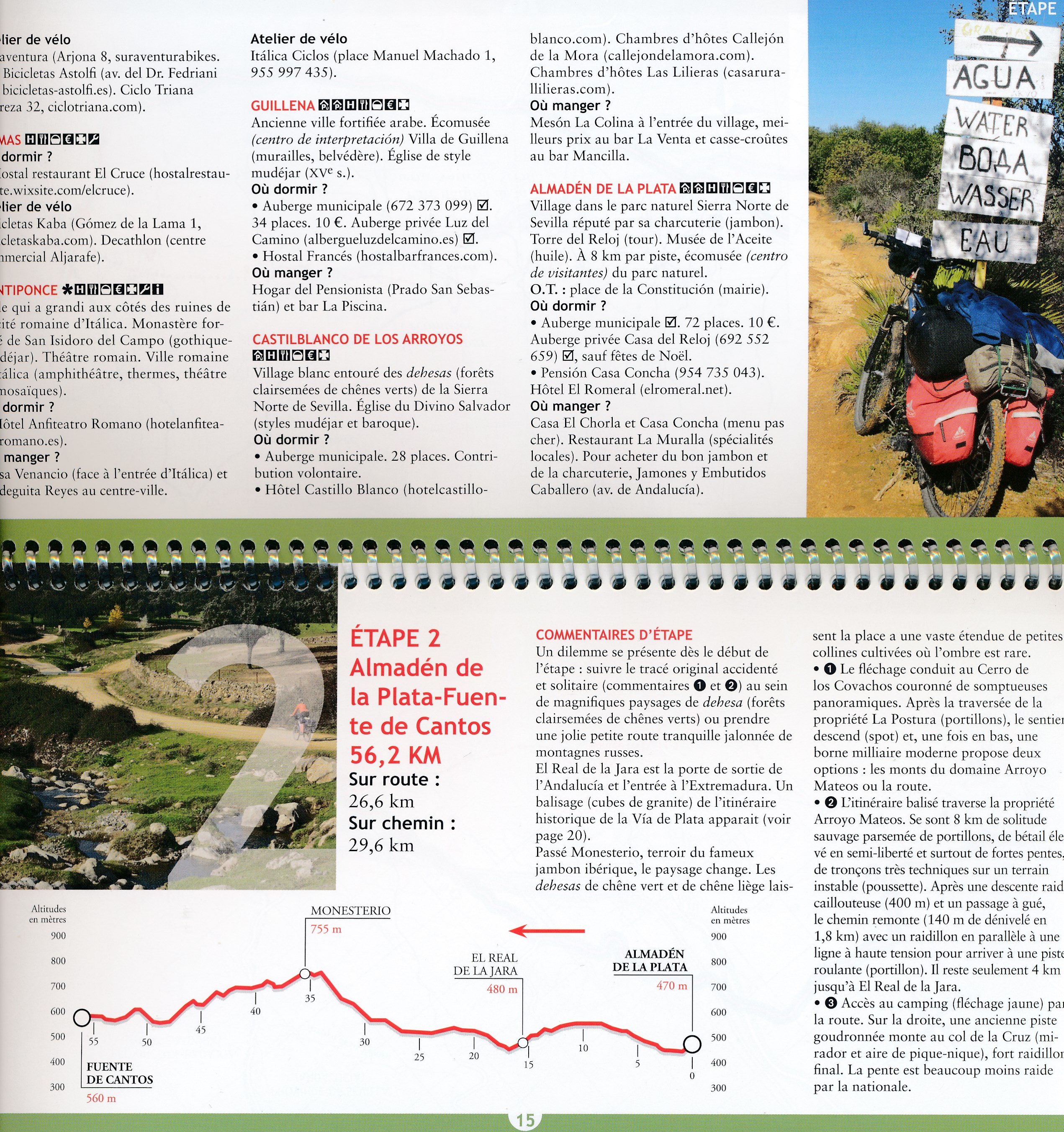 Handige fietsgids van de Via de la Plata in spiraabinding. Met goede kaarten en hoogteprofielen. Franstalig.
