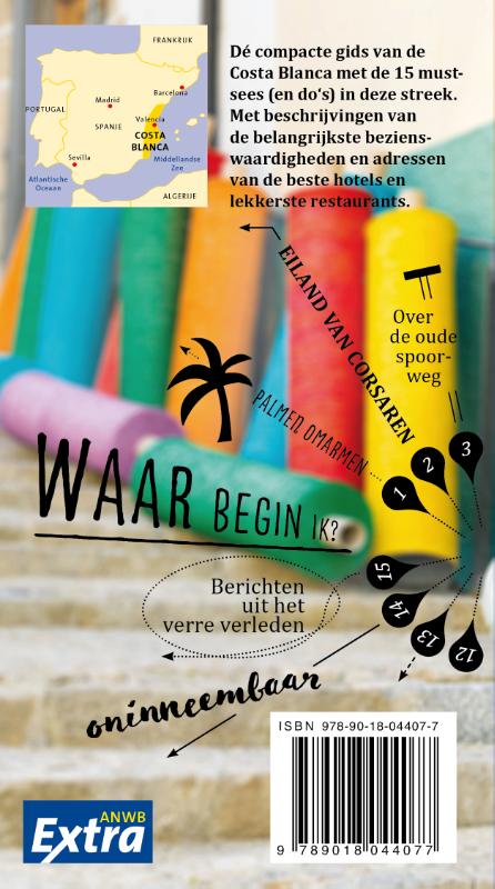 ANWB Extra reisgids Costa Blanca - Spanje Ontdek de Costa Blanca met de compleet vernieuwde reisgids ANWB Extra Costa Blanca! Door de combinatie van zon, zee, strand en lekker eten is de Costa Blanca de perfecte bestemming voor een lekkere zonvakantie. De compacte ANWB Extra reisgids Costa Blanca biedt naast diverse routes door het gebied en veel praktische tips over hotels, campings en vervoer ook 15 inspirerende bezienswaardigheden die je tijdens je vakantie niet mag missen. Doe een dagje Valencia, maak een uitstapje naar wijnstreek Utiel-Requena, of beklim de mythische Mongtó berg bij Dénia en Xàbia. Deze kleine reisgids past gemakkelijk in de handtas en heeft een handige uitneembare kaart met daarop de beste tips voor winkelen, eten en drinken en uitgaan. ANWB Extra is de succesvolste reisgidsenserie van Nederland! Met al meer dan 6 miljoen compacte gidsen verkocht over meer dan 100 titels, biedt deze serie een reisgids voor nagenoeg iedere denkbare bestemming.