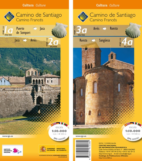 Wandelkaart 1a-4a Camino Santiago de Compostella Puerte Somport - Sangüesa | CNIG - Instituto Geográfico Nacional (9788441615380)