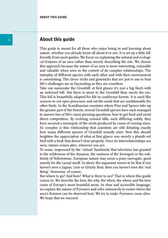 Net als de Crossbill Guides over de Extremadura en de Cevennen is dit een heel waardevolle gids. We hebben met plezier de gids gebruikt op onze wandelingen in de Ordesa en de Sierra de Guara. Ik zou de schrijvers willen uitnodigen in een volgende druk ook wat informatie over de prehistorische rotstekeningen in de streek van de rio Vero op te nemen. Een bezoek aan een aantal van de grotten met deze tekeningen is zeer de moeite waard!