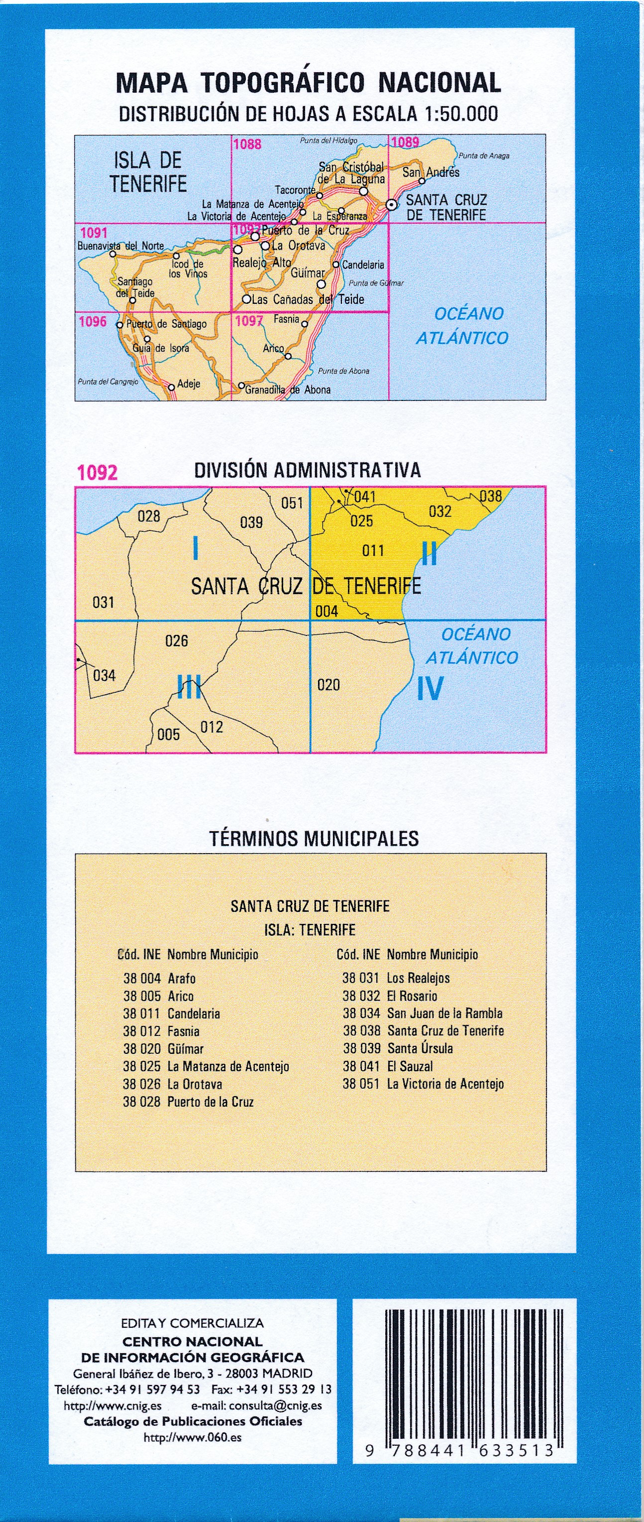 Topografische kaart 1092-II Candelaria | CNIG - Instituto Geográfico Nacional (9788441633513)