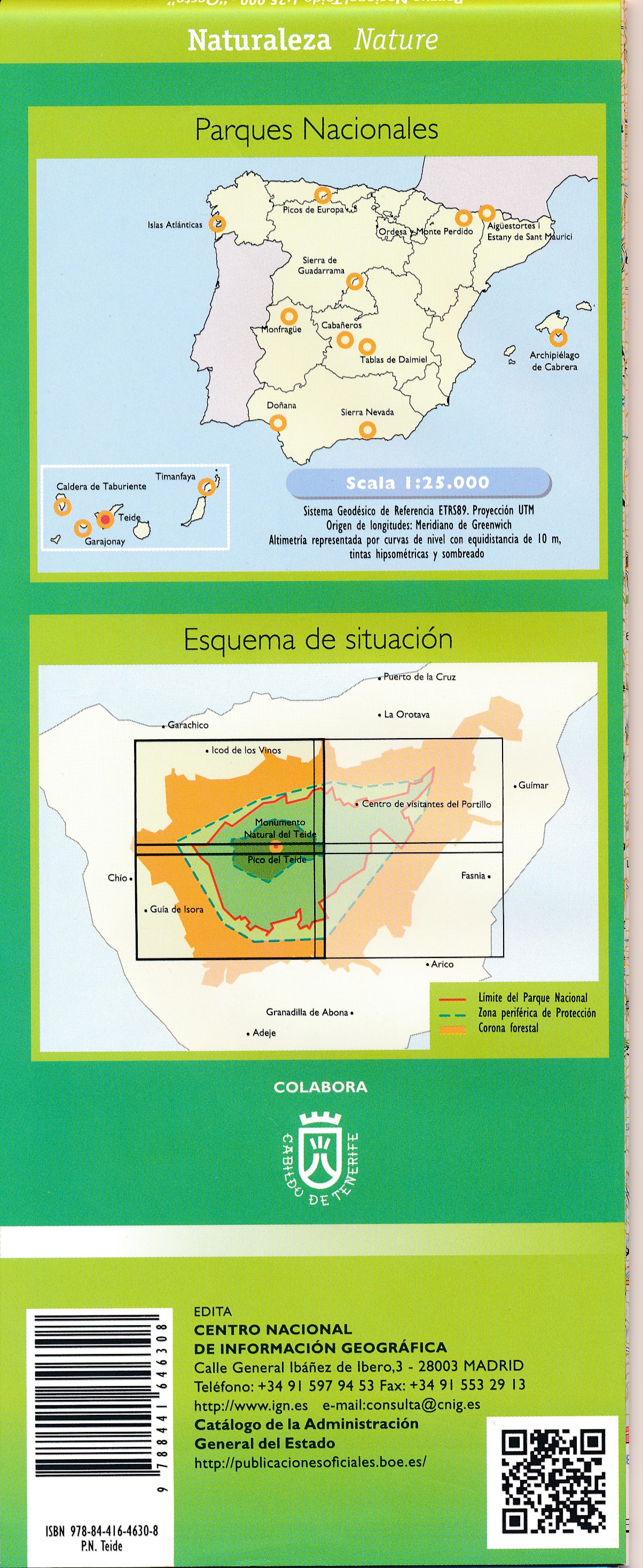 Wandelkaart 4 Parques Nacionales El Teide Red de Senderos -Tenerife | CNIG - Instituto Geográfico Nacional (9788441646308)