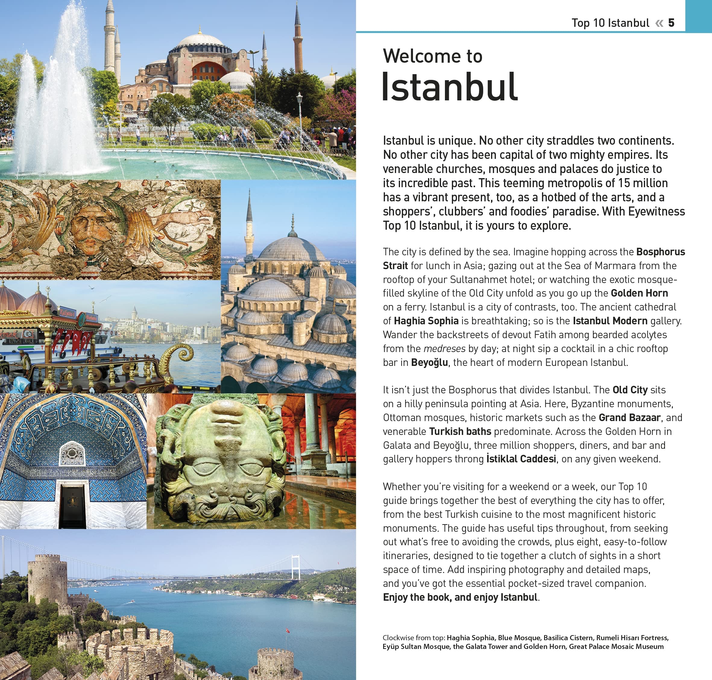 A vibrant metropolis, Istanbul is a city of contrasts - Byzantine monuments, Ottoman mosques and historic markets share space with modern art galleries, stylish bars and contemporary restaurants. Make the most of your trip to this transcontinental city with DK Eyewitness Top 10. Planning is a breeze with our simple lists of ten, covering the very best that Istanbul has to offer and ensuring that you don't miss a thing.