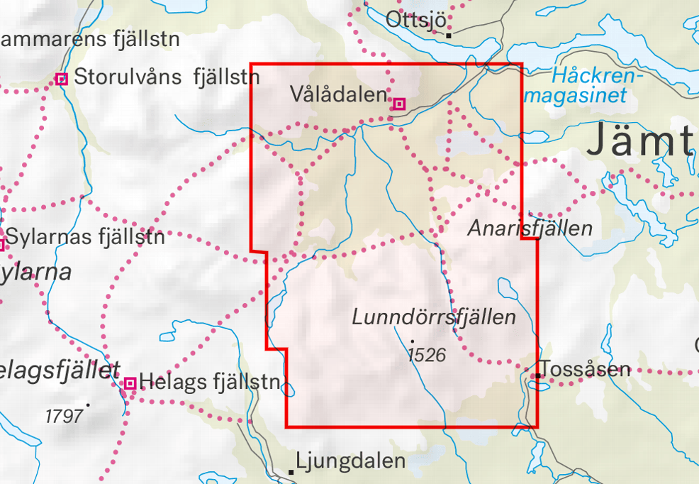 Stensdalsstugorna, Ottfjället, Vallbo, Pyramiderna, Vålåstugorna, Issjödalen, Storådörren, Dörrsjön
