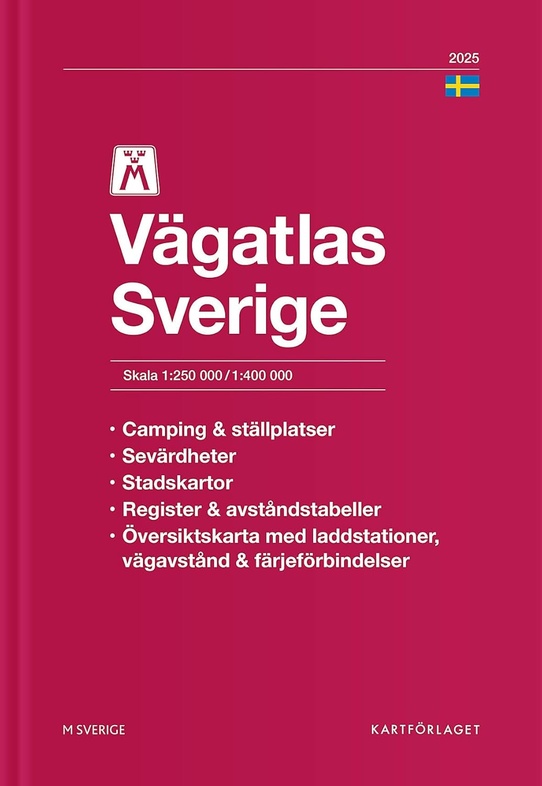 De kaarten bevatten informatie over bezienswaardigheden, toeristische informatie, afstanden over de weg, wegnummering en meer. De atlas bevat stadsplattegronden, boot- en veerbootlijnen, themakaarten van alle landschappen, provincies en het Zweedse werelderfgoed, enz. Legende in het Zweeds