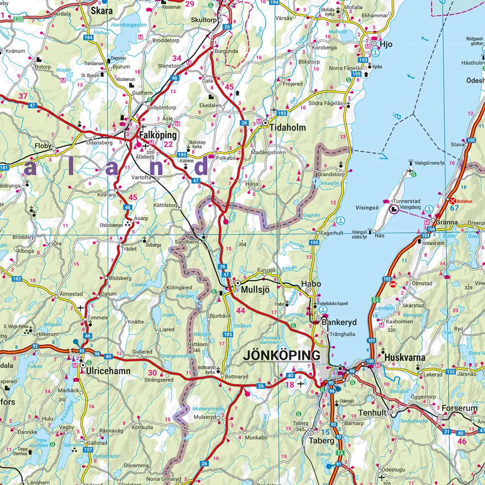 Deze gedetailleerde recto/verso wegenkaart van Zweden is zeer geschikt voor het plannen en voor het rondtrekken door het land.Het wegennetwerk is goed weergeven, zowel de hoofdwegen, de provinciale en lokale wegen. Tevens worden wegnummers duidelijk vermeld. Afstanden tussen plaatsen zijn in kilometers op de kaart ingetekend, daarnaast worden ook op belangrijke plekken benzinestations gemarkeerd.