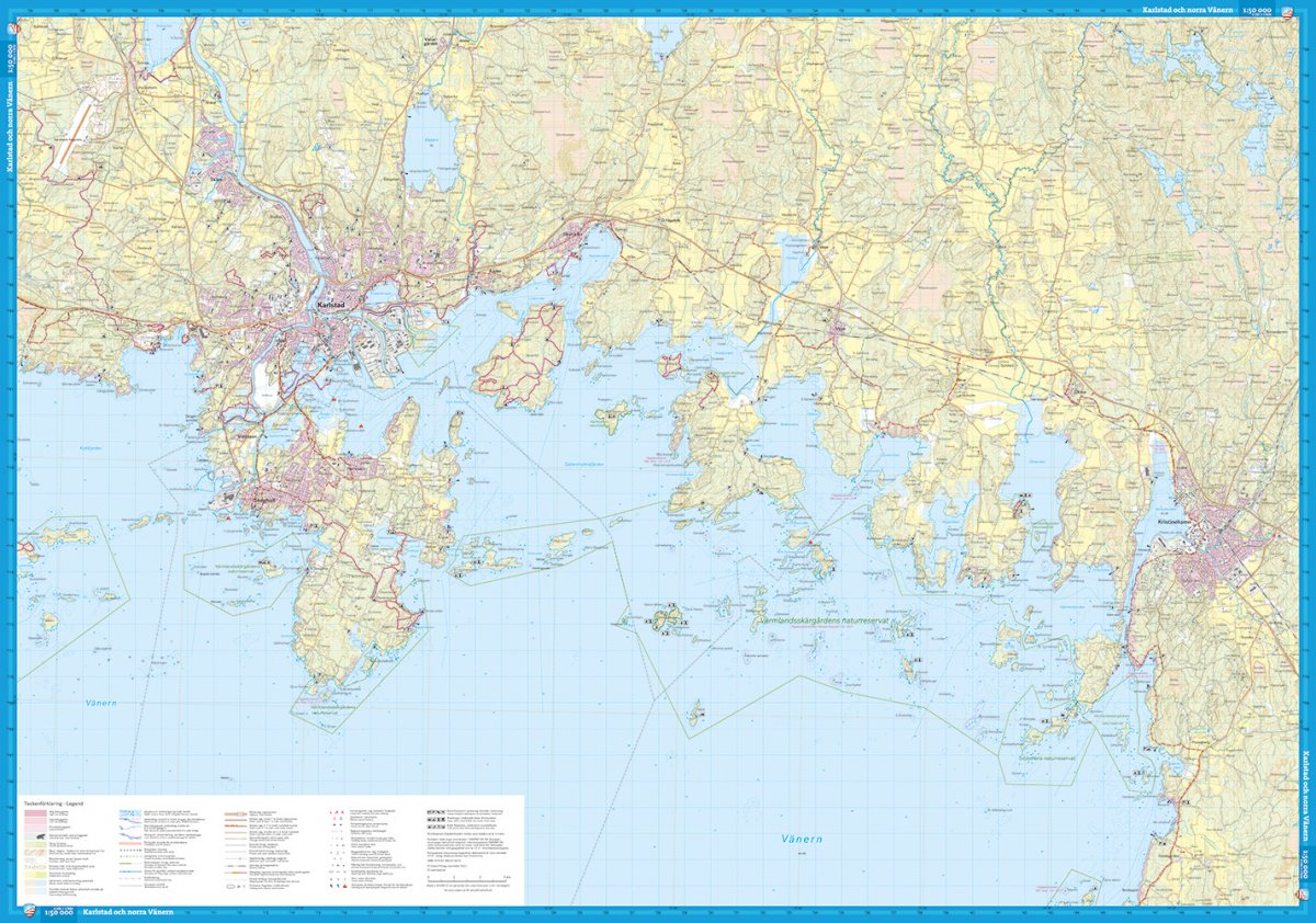 Uitgever: Deze kaart is geproduceerd in samenwerking met Solstaskäret, Friluftsfrämjandet in Arvika-Sunne en Kristinehamn, Karlstad langeafstandsvaarders en Vänerkajak. Op de kaart staan een aantal gemarkeerde wandelroutes, campings en windschermen. Op de kaart vindt u ook aanbevolen startlocaties voor tochten in kajak of op langlaufschaatsen.
