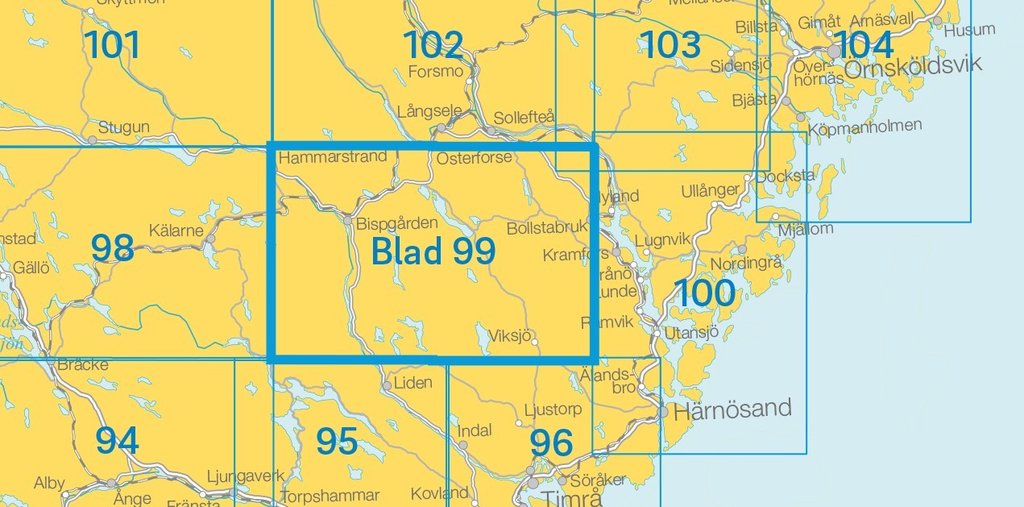 Sverigeserien is een outdoor kaartenserie bestaande uit 116 bladen met betrekking tot het zuiden en midden van Zweden en de noordelijke kustlijn. De kaart is geschikt voor outdoor activiteiten zoals wandelen, excursies, parcourslopen, jagen, vissen, paardrijden, fietsen, mountainbiken, kajakken, schaatsen en nog veel meer. Elke kaart beslaat een oppervlakte van 45x68km.Deze topografische kaarten op schaal 1:50 000 bevatten alle informatie die nodig is voor buitenactiviteiten: terreininformatie, wandelpaden, verlichte paden, campings, schuilplaatsen, golfbanen, (buiten) zwembaden, historische overblijfselen, wegen in verschillende categorieën, spoorlijnen en nog veel meer.