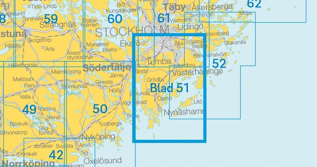 Sverigeserien is een outdoor kaartenserie bestaande uit 116 bladen met betrekking tot het zuiden en midden van Zweden en de noordelijke kustlijn. De kaart is geschikt voor outdoor activiteiten zoals wandelen, excursies, parcourslopen, jagen, vissen, paardrijden, fietsen, mountainbiken, kajakken, schaatsen en nog veel meer. Elke kaart beslaat een oppervlakte van 45x68km.