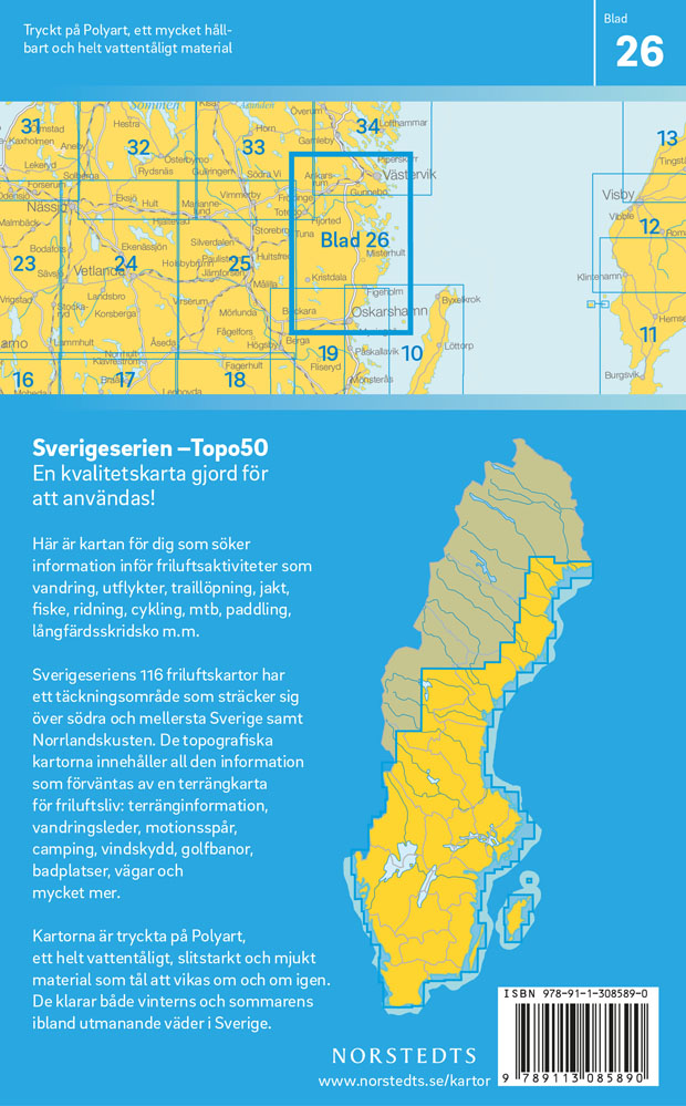 - Topografische kaart - Wandelkaart 26 Sverigeserien Västervik | Norstedts