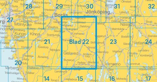 Sverigeserien is een outdoor kaartenserie bestaande uit 116 bladen met betrekking tot het zuiden en midden van Zweden en de noordelijke kustlijn. De kaart is geschikt voor outdoor activiteiten zoals wandelen, excursies, parcourslopen, jagen, vissen, paardrijden, fietsen, mountainbiken, kajakken, schaatsen en nog veel meer. Elke kaart beslaat een oppervlakte van 45x68km.Deze topografische kaarten op schaal 1:50 000 bevatten alle informatie die nodig is voor buitenactiviteiten: terreininformatie, wandelpaden, verlichte paden, campings, schuilplaatsen, golfbanen, (buiten) zwembaden, historische overblijfselen, wegen in verschillende categorieën, spoorlijnen en nog veel meer.