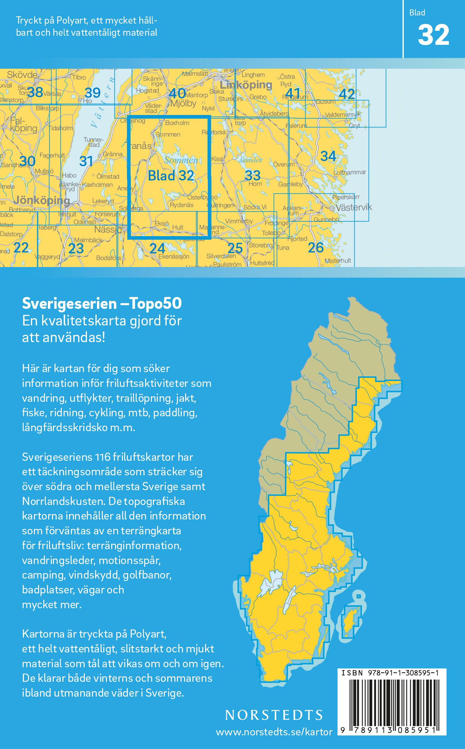 - Wandelkaart - Topografische kaart 32 Sverigeserien Tranås | Norstedts