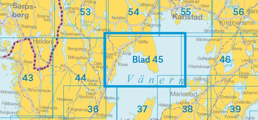 Sverigeserien is een outdoor kaartenserie bestaande uit 116 bladen met betrekking tot het zuiden en midden van Zweden en de noordelijke kustlijn. De kaart is geschikt voor outdoor activiteiten zoals wandelen, excursies, parcourslopen, jagen, vissen, paardrijden, fietsen, mountainbiken, kajakken, schaatsen en nog veel meer. Elke kaart beslaat een oppervlakte van 45x68km.