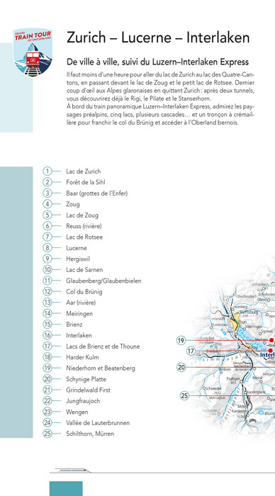 Grand Train Tour of Switzerland FR hkfLe guide touristique du Grand Tour de Suisse en Train vous emmène pour un voyage de 1 280 km sur les plus belles lignes ferroviaires de Suisse, passant par les plus beaux panoramas et sites touristiques du pays.