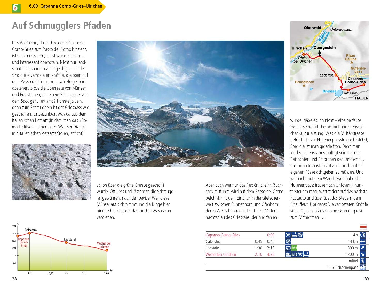 Die nationale Route 6 Alpenpässe-Weg führt von Chur in stetem Auf und Ab über die schönsten und eindrücklichsten Übergänge der Bündner und Walliser Alpen bis an den Genfersee. Eine fordernde, aber auch begeisternde Alpinwandertour in 34 Etappen und 600 Kilometern mit vielen landschaftlichen Highlights und Einblicken in eine abwechslungsreiche Kulturlandschaft. Mit allen praktischen Informationen, übersichtlichen Kartenausschnitten und Höhenprofilen, einer Fülle an Hinweisen auf Sehenswürdigkeiten und Attraktionen am Weg sowie mit Farbfotos reich illustriert.