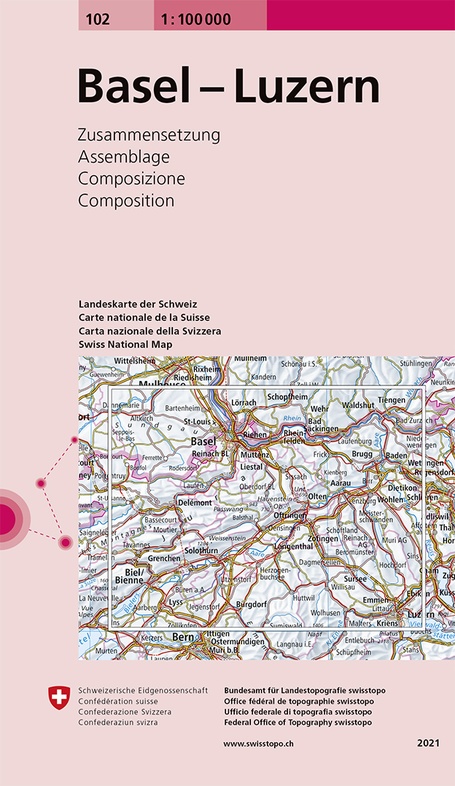 - Fietskaart - Wegenkaart - landkaart 102 Basel / Luzern | Swisstopo