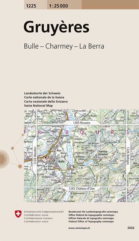 - Wandelkaart - Topografische kaart 1225 Gruyères | Swisstopo