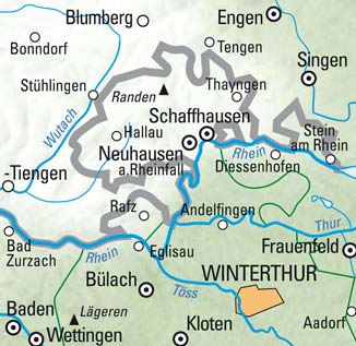 Gebied: Blumberg, Engen, Bonndorf, Tengen, Singen, Stühlingen, Thayngen, Hallau, Schaffhause, Neuhausen, Stein am Rhein, Diessenhofen, Tiengen, Rafz, Andelfingen, Bad Zurzach, Eglisau, Frauenfeld, Bülach, Winterthur, Baden, Wettingen, Kloten, Aadorf, Raanden, Lägeren, Wutach, Rhein, Thur, Töss
