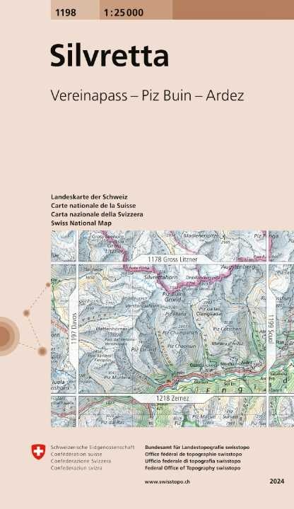- Wandelkaart - Topografische kaart 1198 Silvretta | Swisstopo