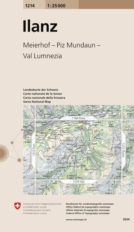 - Wandelkaart - Topografische kaart 1214 LLanz | Swisstopo