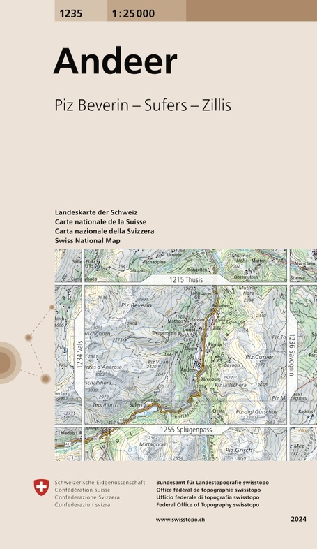 - Wandelkaart - Topografische kaart 1235 Andeer | Swisstopo
