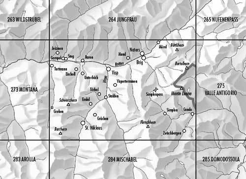 - Wandelkaart - Topografische kaart 284 Mischabel | Swisstopo