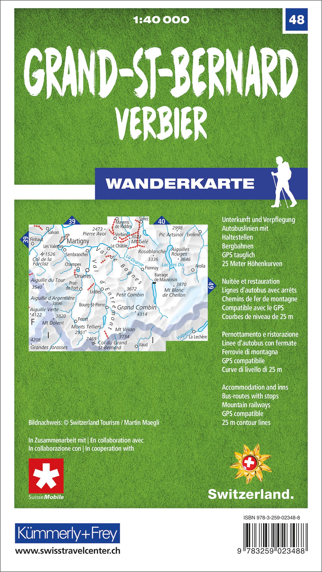 Wandelkaart 48 Grand-St-Bernard / Verbier | Kümmerly & Frey (9783259023488)