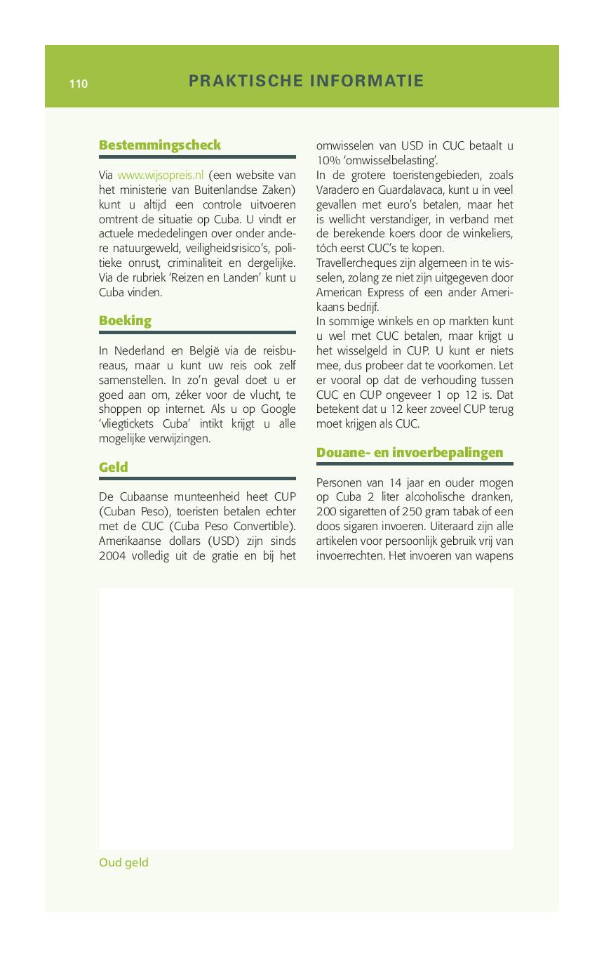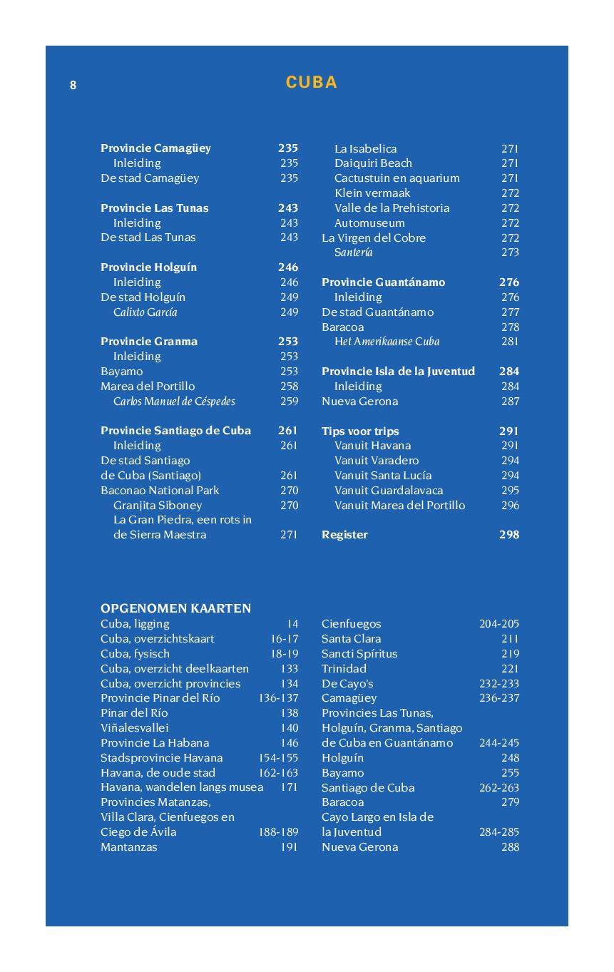 Het Caribische eiland Cuba is een schitterend vakantieland met een buitengewoon vriendelijke bevolking. Met zijn levendige cultuur, rijke verleden en uitgestrekte stranden langs helder, blauw water weet Cuba al jarenlang reizigers te lokken. Hoewel er op toeristisch gebied geen enkele beperking bestaat, is Cuba nog steeds een zogenaamd derdewereldland. Derhalve is een goede voorbereiding van uw reis naar en door Cuba van groot belang. Met behulp van dit boek krijgt de reiziger een niet alleen een betrouwbare indruk vooraf, maar het helpt ook om ter plaatste maximaal te kunnen genieten.