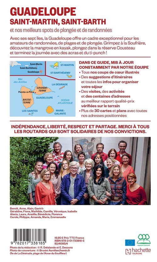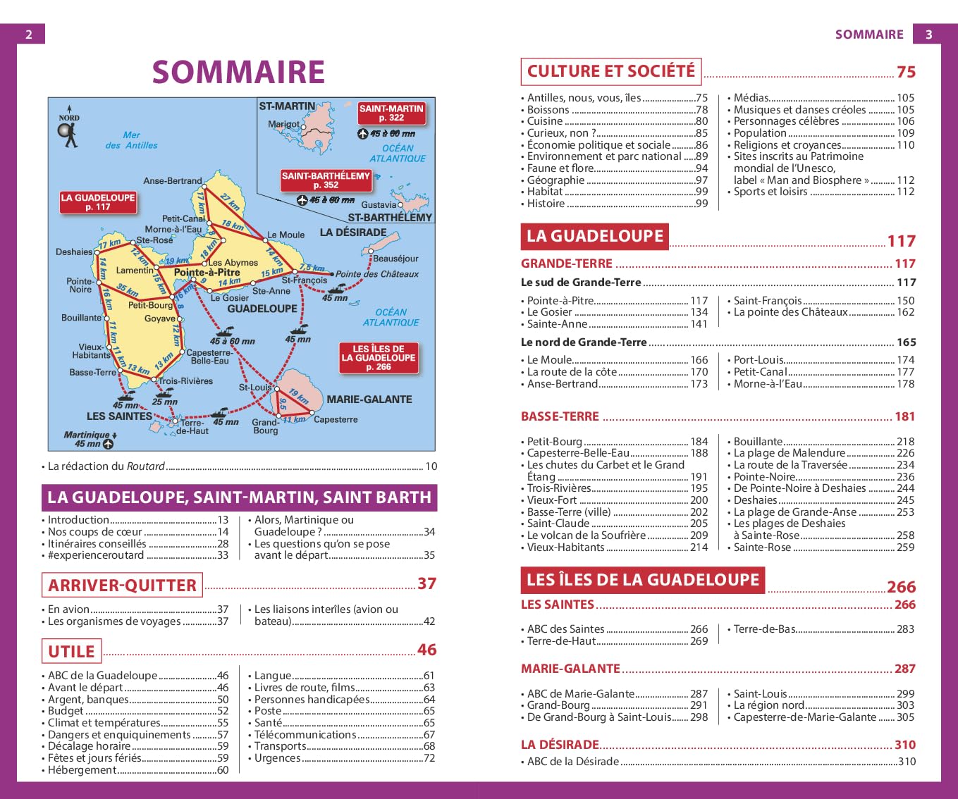 S'offrir des plongées inoubliables autour de la Guadeloupe. Visiter les plantations de café. Randonner autour de la Soufrière. Partir à la découverte de la mangrove. Profiter des plages de Marie-Galante et de Saint-Barth. Passer une nuit aux Saintes, pour retrouver l'ambiance d'un village de pêcheurs. Profiter d'une journée de détente sur le paradisiaque îlet Pinel... Le Routard Guadeloupe (Saint-Martin et Saint-Barth) c'est aussi, une première partie haute en couleur avec des cartes et des photos pour découvrir plus facilement les îles et repérer nos coups de coeur ; des adresses souvent introuvables ailleurs : dévorer une brochette de requin au fameux ouassous... ; des visites culturelles originales en dehors des sentiers battus ; des infos remises à jour chaque année ; des cartes et plans détaillés.Reviews