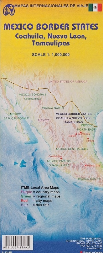 Wegenkaart - landkaart Mexico Border States Northeast Coahuila, Nuevo Leon, Tamaulipas | ITMB (9781553415992)