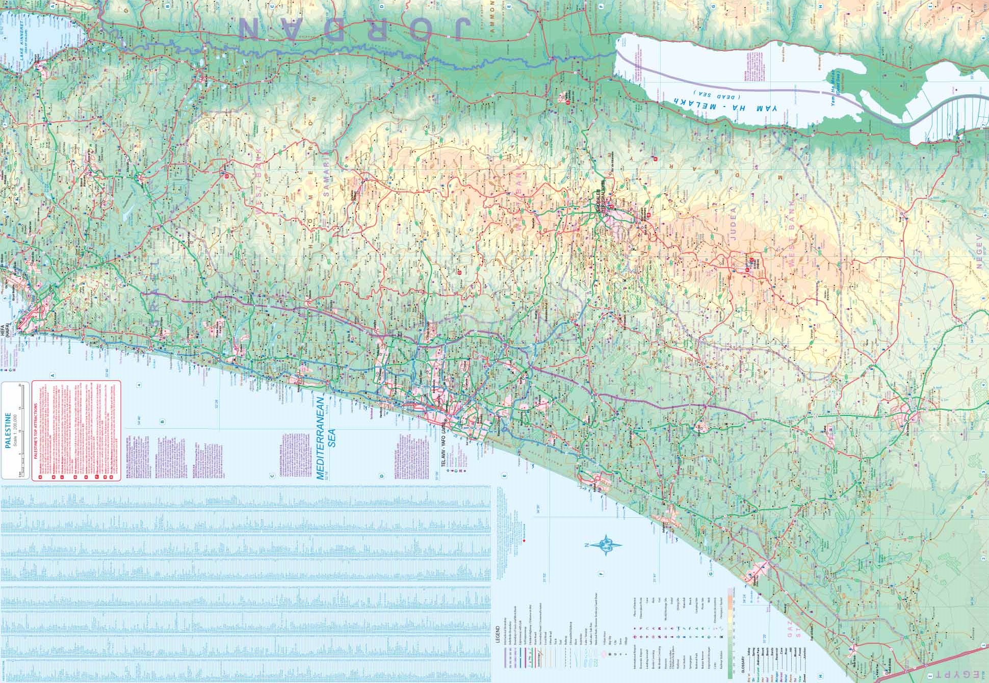 This is a new title for ITMB and the first time a separate map for that portion of the area known as Palestine and controlled by Palestinians has been published. This is essentially an attempt to show a political reality that exists, in that no one denies that both the West Bank and the Gaza Strip exist, albeit as a tightly-controlled entity that is not a country in the traditional sense of the word but is, nonetheless the homeland of millions of people and a self-governing entity. Jerusalem has been shown as an entity, without a border, in order to emphasize its importance as a unifying point of three great religions. Barricades do exist within the city, but these exist mostly to prevent clashes and reduce frictions, and we prefer to concentrate our hopes for Jerusalem as a future symbol of unity. Geographically, to fit both the southerly Gaza Strip area and the northerly West Bank portion together, it has been necessary to include large portions of Israel proper. The border has been shown for purposes of illustration only and in a generalized manner to represent reality and is not intended to indicate what would normally be a properly-defined border between nation states. This part of the world has been called Palestine since Roman times and until a more representative name can be created, we are stuck with using a name that is acceptably used to describe this part of the world. Sometimes, one has to go beyond what is comfortably safe and do something new. ITMB has been doing this since 1983; this is just another leap of faith.