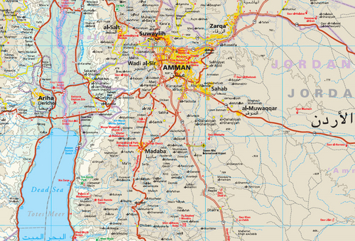 Duidelijke en handige overzichtskaart voor de langere wegritten in Jordanie.