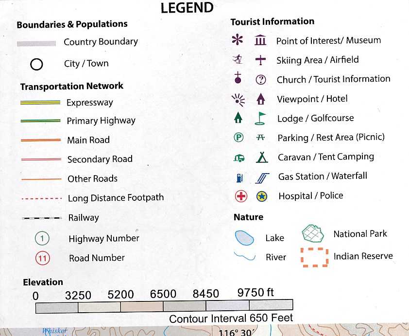 Gedetailleerde wegenkaart van deze 2 bekende nationale parken in Canada. Naast toerischtische informatie zjn de belangrijkste wandelpaden schetsmatig ingetekend en worden de campings weergegeven, hogtelijnen geven een goed beeld van de hoogteverschillen en bergern in het gebied.. Jasper staat op de ene kant en Banff op de andere zijde.