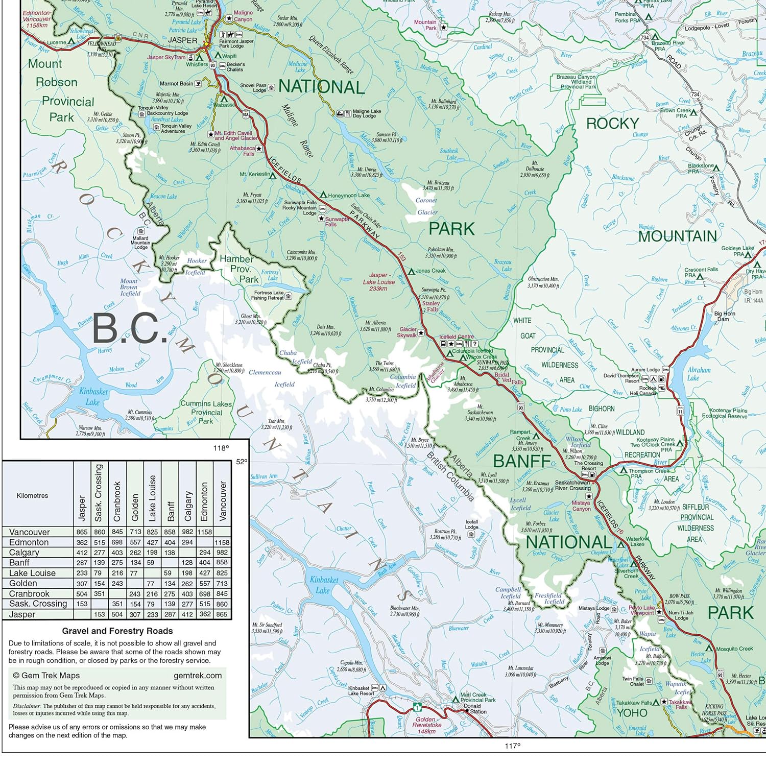- Wegenkaart - landkaart 02 Canadian Rockies Banff & Jasper | Gem Trek Maps