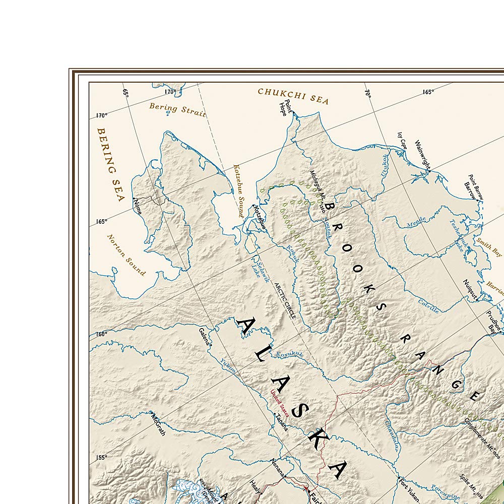 Our most detailed wall map of Canada, features the classic National Geographic reference styling. Features thousands of place names, accurate political boundaries, national parks, archeological sites, and major infrastructure networks such as roads, canals, ferry routes, and railroads. Canada’s diverse terrain is detailed through accurate shaded relief, coastal bathymetry, and symbolism for water features and other landforms. This wall map depicts Canada and the areas surrounding the Great Lakes. Includes Canadian provinces and US State boundaries.