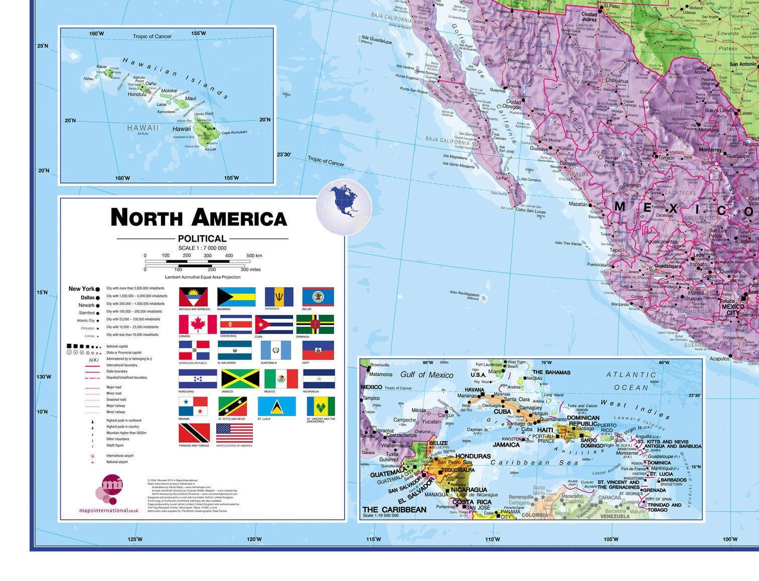 Wandkaart Noord Amerika, politiek, 100 x 120 cm | Maps International (9781904892045)