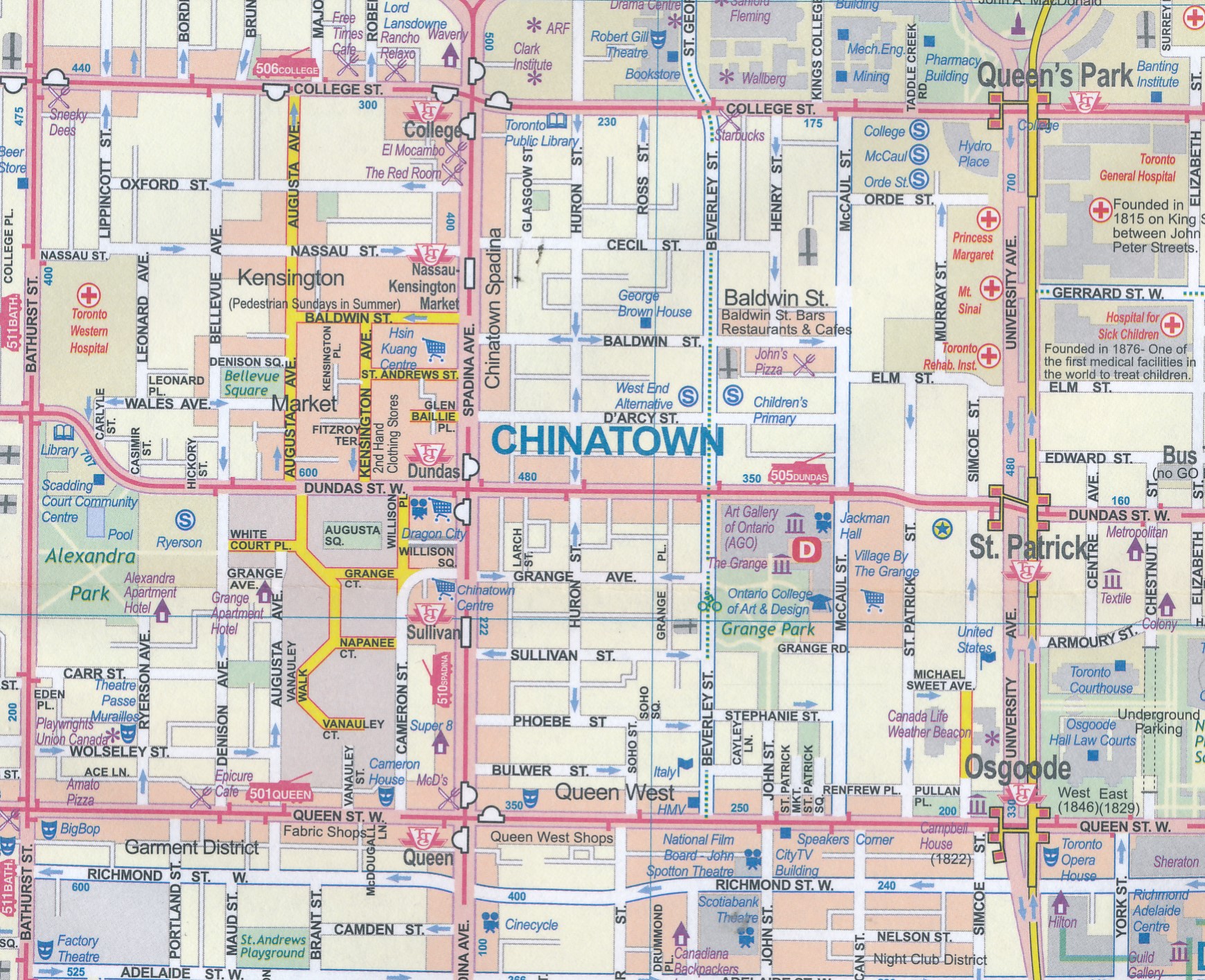 Combinatie plattegrond Toronto en kaart Ontario niet echt handig. Voor een stadsplattegrond is de kaart erg groot en lastig te hanteren. Kaart Ontario voldoet aardig.