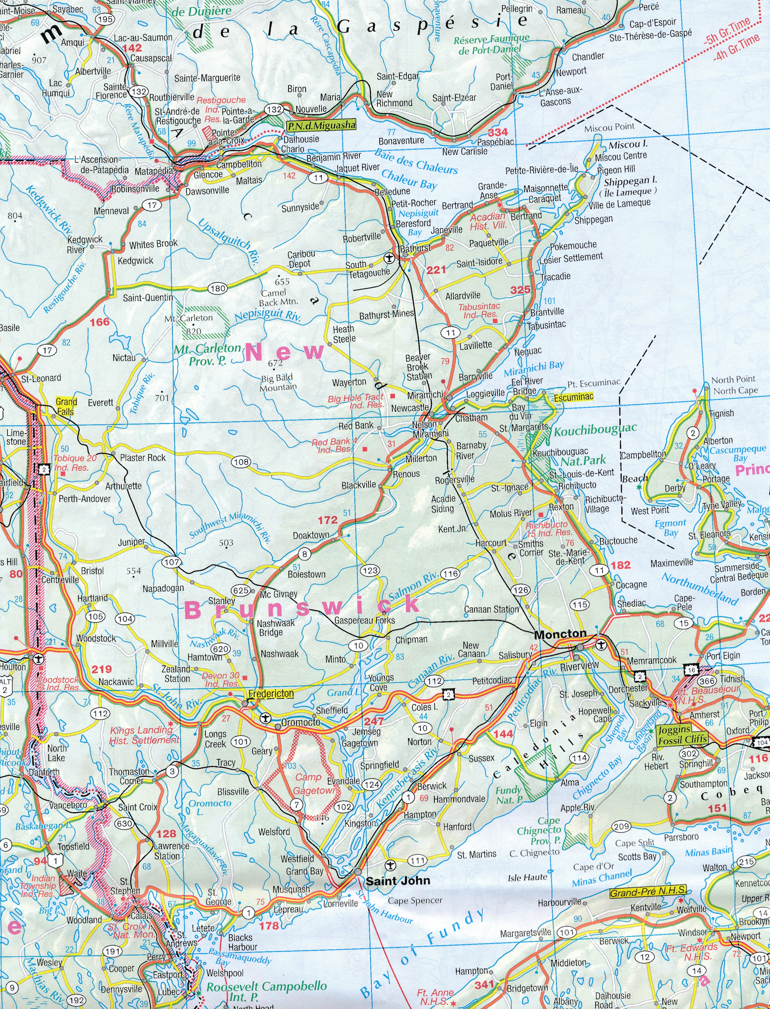 A topographical map of Quebec, Canada in colour, with tourist routes, city details, and national parks clearly outlined.