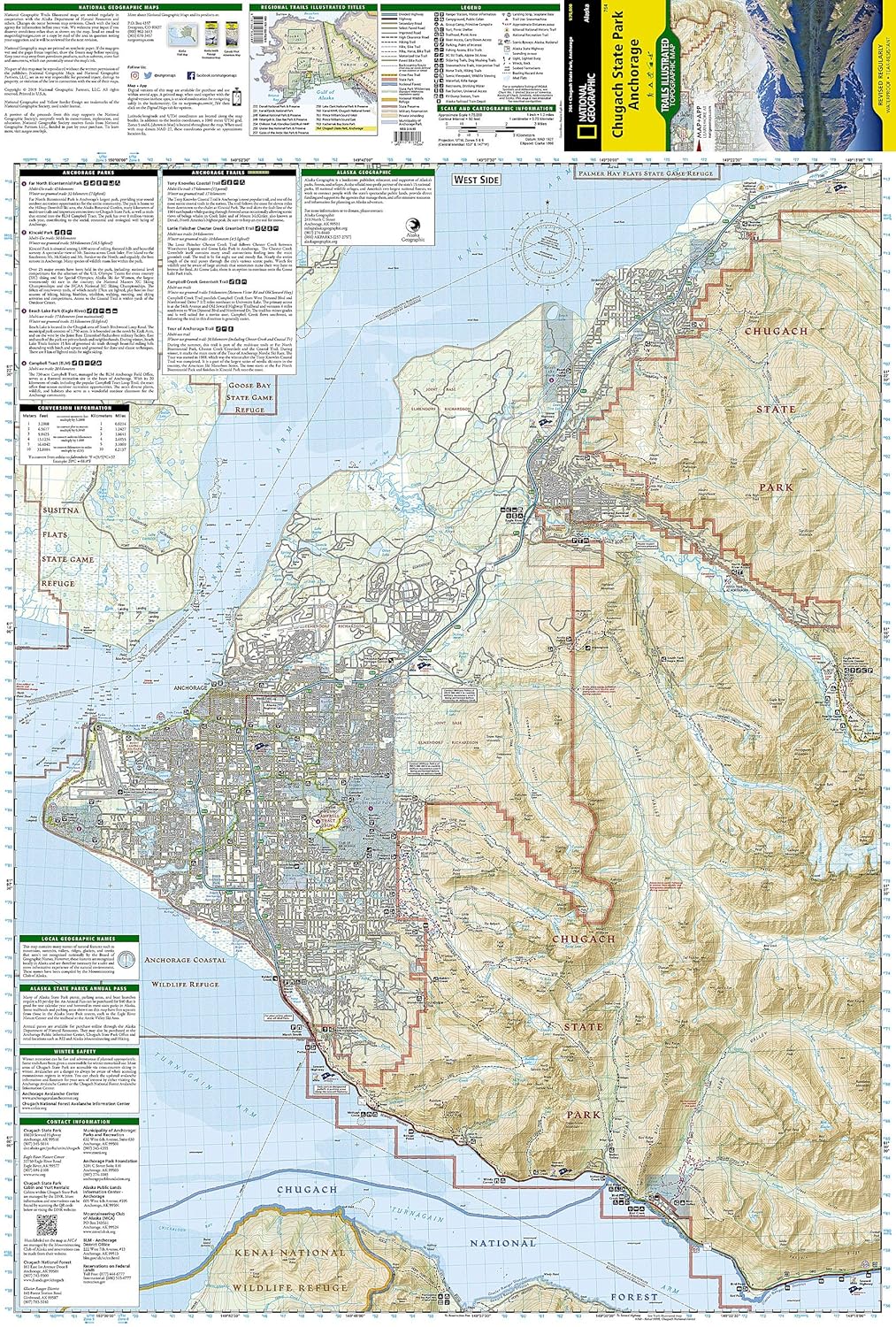National Geographic's Trails Illustrated map of Chugach State Park and Anchorage combines unmatched detail with helpful information to offer an invaluable tool for making the most of your visit to this exciting region. Expertly researched and created in partnership with local land management agencies, this map features key points of interest including Eklutna Lake, Knik River, Penguin Creek, North Fork Eagle River, and the communities of Anchorage, Eagle River, and Alyeska. Portions of Tony Knowles Coast Trail, Iditarod National Historic Trail, and Glenn Highway and Seward Highway scenic byways are shown, as well.Whether you're traveling by horse, skis, snowmobile or on foot, you'll find trails marked according to your desired use. Trail mileage between intersections and handy summaries of Anchorage parks and trails will help you choose the path that's right for you. There is also an elevation profile of Crow Pass Trail. Some of the many recreation features shown include campgrounds, public cabins, yurts, trailheads, interpretive trails, rifle ranges, and river access locations for paddling and fishing. Helpful information about recreation activities available in the region, regulations, and safety tips are included as well. The map base includes contour lines, shaded relief, elevations for summits, and depth soundings and other navigational aids for boating.