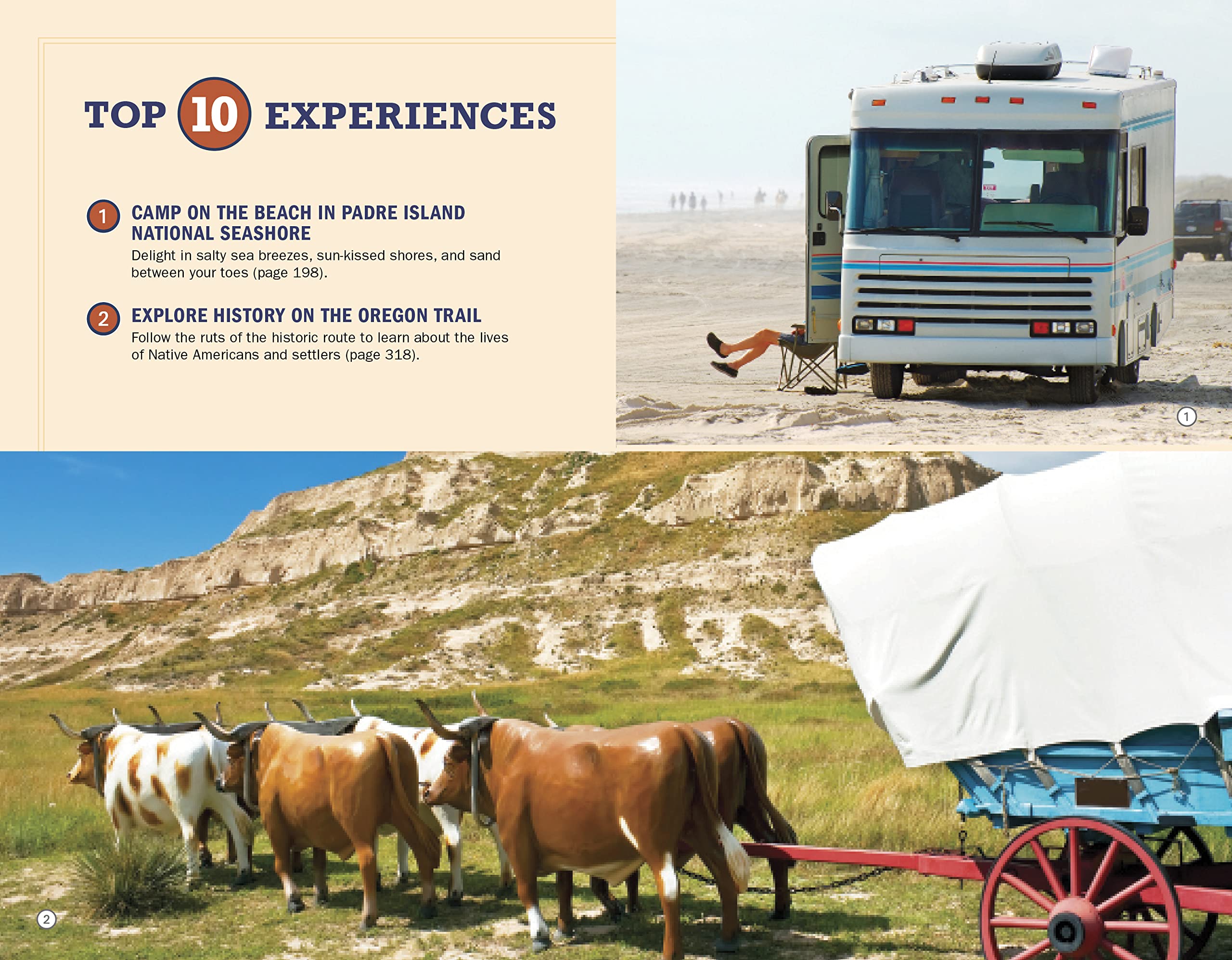 - Can't-miss stops from coast to coast: Camp on the beach in the Florida Keys, follow the ruts on the historic Oregon Trail, and wildlife-watch in Yellowstone. Hike in Acadia with your four-legged friend, take in the colorful wind-swept vistas of the Badlands, and enjoy mountain-peak views with your morning cup of coffee in Colorado