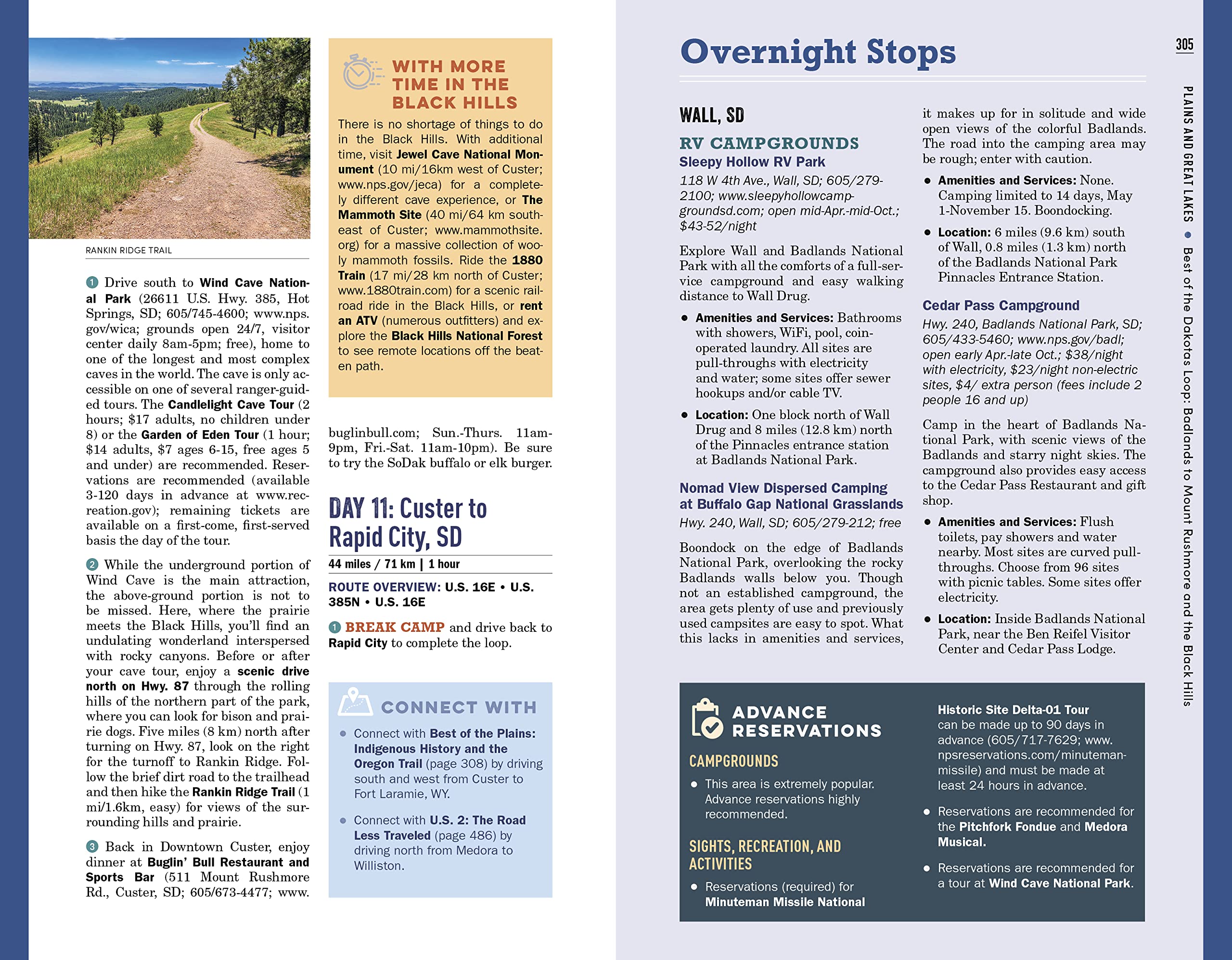 - Comprehensive planning resources: Easy-to-use maps that highlight where you can (and can't) drive an RV, nearby grocery stores for each campground, plus tips for health and safety on the road, navigating weather conditions, RV-ing with pets, and minimizing your environmental impact along the way
